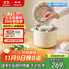BRUNO【政府补贴】电饭煲复古低糖迷你电饭煲1.5L 1-2-3人家用炖汤煮粥高颜值压力电饭锅 象牙白BOE128