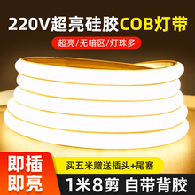 最嘉超亮升级220V高压COB硅胶防水灯带背胶自粘LED软光条室内户外橱柜亮化 10米装-暖光