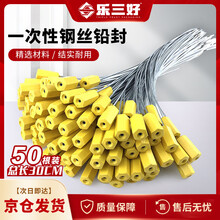 乐三好 钢丝铅封 一次性抽紧式金属扎带封签封条 物流货柜防盗铅封水电仪表防拆防调包施封锁 黄色 50条30CM
