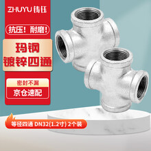 铸钰 等径四通 玛钢管件 水管配件 镀锌内丝正四通 水暖接头 镀锌平面四通 DN32(1.2寸) 2个装