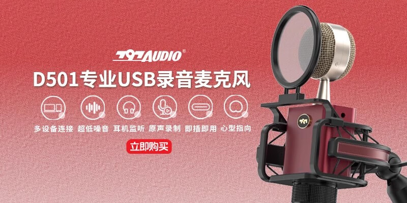 797audio七九七音响D501录音直播话筒USB专业录音麦克风直播设备自动降噪