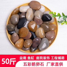 昀枫杉 天然鹅卵石 50斤/袋 精抛五彩5-8cm 6袋起订 园林造景工程铺地装饰铺路雨花石