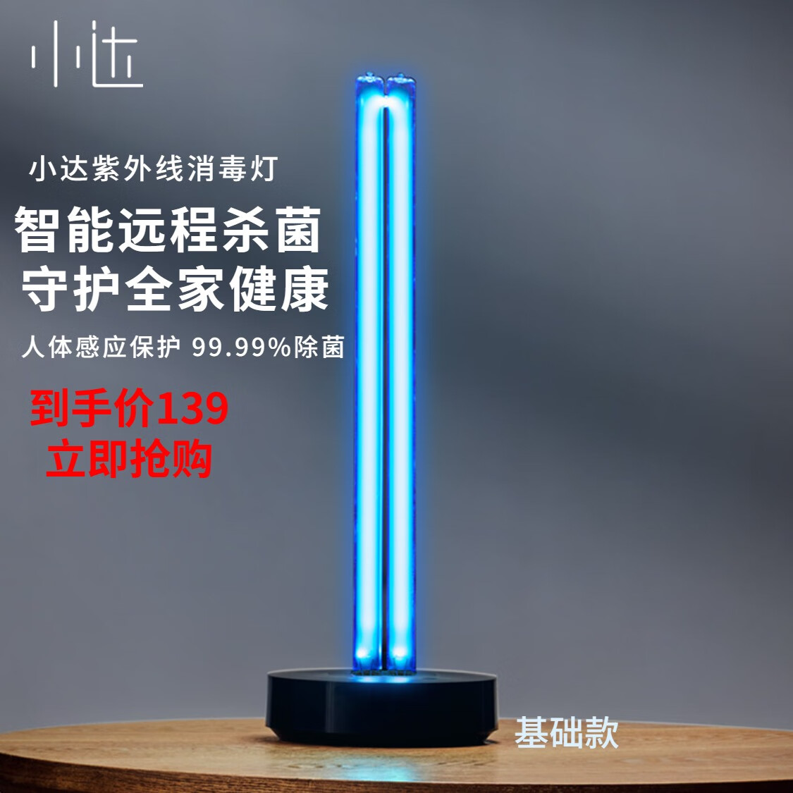 小达杀菌消毒灯智能家用移动式紫外线灯管杀菌灯稳定杀菌持久耐用节能环保杀菌灯 基础款