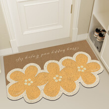 地尚小清新花朵丝圈地垫入户门垫pvc可裁剪进户门脚垫家用玄关防滑垫 向阳花棕黄 120cm*160cm 默认横铺,竖铺联系客服