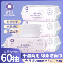 猫王60片一次性抽取式洗脸巾学生洁面巾干湿两用加厚化妆卸妆棉 3包装