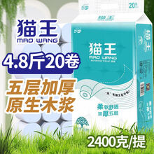 猫王4.8斤20卷卫生纸木浆无芯卷筒纸家用厕纸手纸中卷妇婴纸巾家庭装 5层 120g/卷*20卷 原生木浆