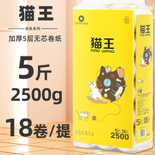 猫王4斤18卷可湿水卷纸无芯5层加厚卫生纸巾实惠装厕纸擦手纸湿水柔韧 5层 111g/卷*18卷 干湿两用