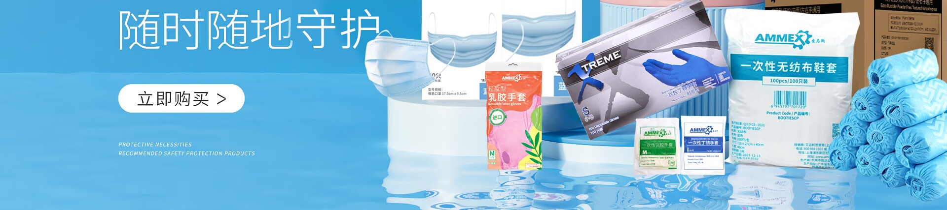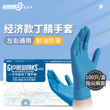 ammex爱马斯一次性手套食品级丁腈加厚耐用防水防油耐腐蚀家务清洁工业科研实验室乳胶防护工作劳保 国产【轻薄款】浅蓝色丁腈100只/盒 M中号