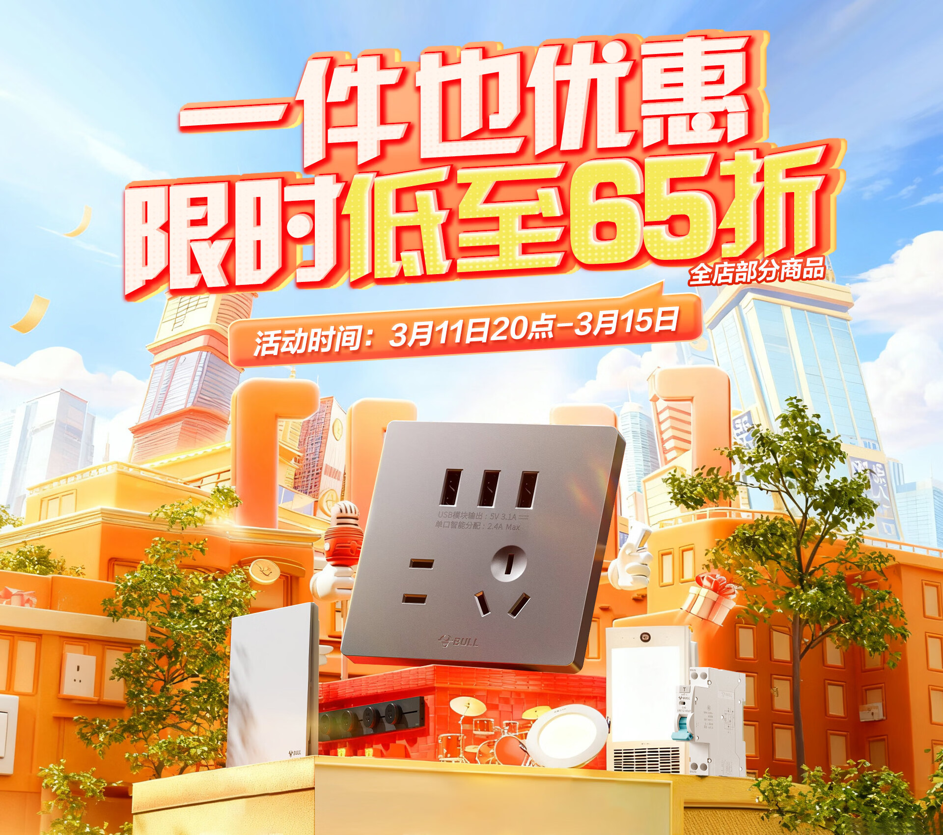 公牛无边框大面板开关全新上线