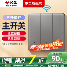 公牛(BULL)床头无线遥控开关远程照明灯控制器免布线单开双控灯全屋智能 【星空灰】三位主开关(可搭配随意贴)