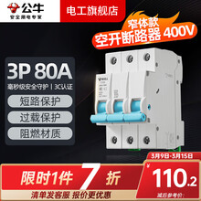 公牛(BULL)开关插座面板空气开关1p双线小型家用空开单p63a过载保护断路器 3P 80A空开【升级窄体】