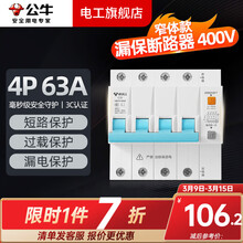 公牛(BULL)空气开关空开开关63A小型断路器家用100A塑壳电闸总闸3P过载4P 1P 63A空开【独立包装】