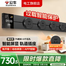 公牛大师数显轨道插座轨道式插排明装移动嵌入式磁吸免打孔智能餐边柜 智能屏显【APP远程控制】75cm+4个五孔 厨房餐桌边柜岛台轨道插座