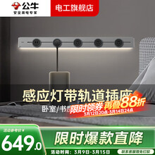 公牛(BULL)轨道插座明装家用卧室起夜灯客厅书房厨房餐边柜插座红外动作双感 (灰色灯带轨道)1000mm+5个适配器