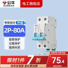 公牛(BULL)开关插座面板空气开关空开 2P小型断路器 双极家用空开2P-32A 2P 80A空开【升级窄体】