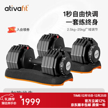 AtivaFit可调节重量男女士练臂肌专业哑铃健身器材家用25kg调重哑铃 2.5kg-25kg可调节重量(一只)