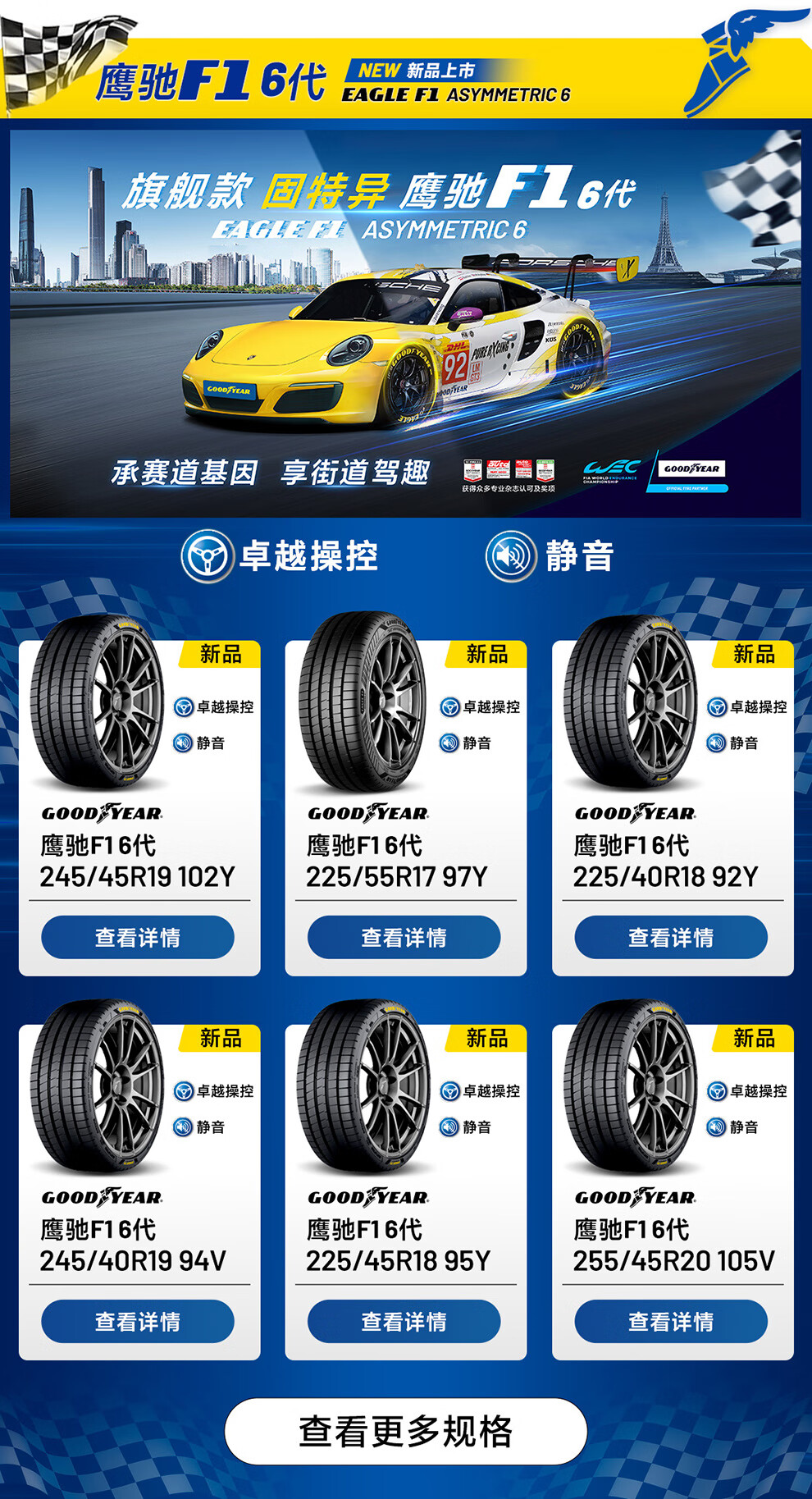 Goodyear固特异轮胎245/45R19 102Y 鹰驰F1 6代 EAGLE F1 ASYMMETRIC 6 XL