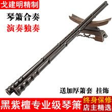 檀韵戈建明精制红木琴箫细一节通口八孔专业演奏高档木萧高级独奏乐器 黑紫檀琴箫 F调