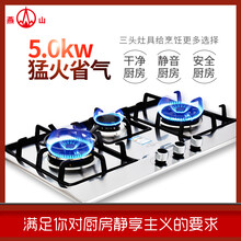 燕山不锈钢三眼燃气灶防爆灶5.0KW大火力猛火灶不锈钢天然气灶具台式嵌入式家用燃气灶三眼灶燃气灶 B602加厚不锈钢面板 三灶款 天然气