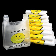 泰洁 外卖打包袋 便利店购物塑料袋水果店马夹袋 手提笑脸袋方便袋 26*42cm,常规3丝,50个/扎