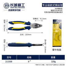 长城精工老虎钳8寸工业级手钳虎口钳子钢丝钳7寸平口钳6寸电工钳子 钢丝钳8寸(211568)