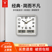 北极星(POLARIS)挂钟客厅家用时钟简约木纹双日历方形钟表 72220银色【夜光石英款】