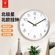 北极星家用挂钟客厅卧室简约北欧创意石英钟时尚钟表2026新款钟表挂墙 摩卡棕 12英寸