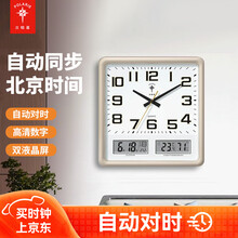 北极星家用客厅用挂钟挂墙时尚静音电子万年历夜光自动对时电波钟 夜光金-双日历款 自动对时 16英寸