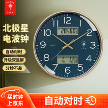 北极星电波钟表家用客厅大气创意时尚挂钟轻奢电子万年历静音时钟 日历款电波钟-科技金 自动对时 12英寸