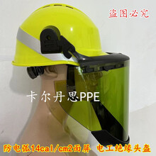 代尔塔绝缘面罩头盔式防电弧面罩防电弧面屏14卡电弧面罩带下颚防护面罩电工绝缘面具 101403支架+101309防防电弧面屏