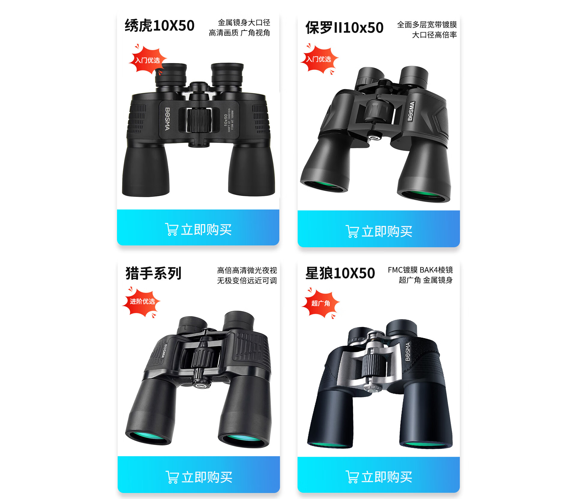 博冠(BOSMA)猎影者10x50大目镜广角高清高倍 微光夜视演唱会 旅游 双筒望远镜 猎影者10x50+原装手机拍照支架