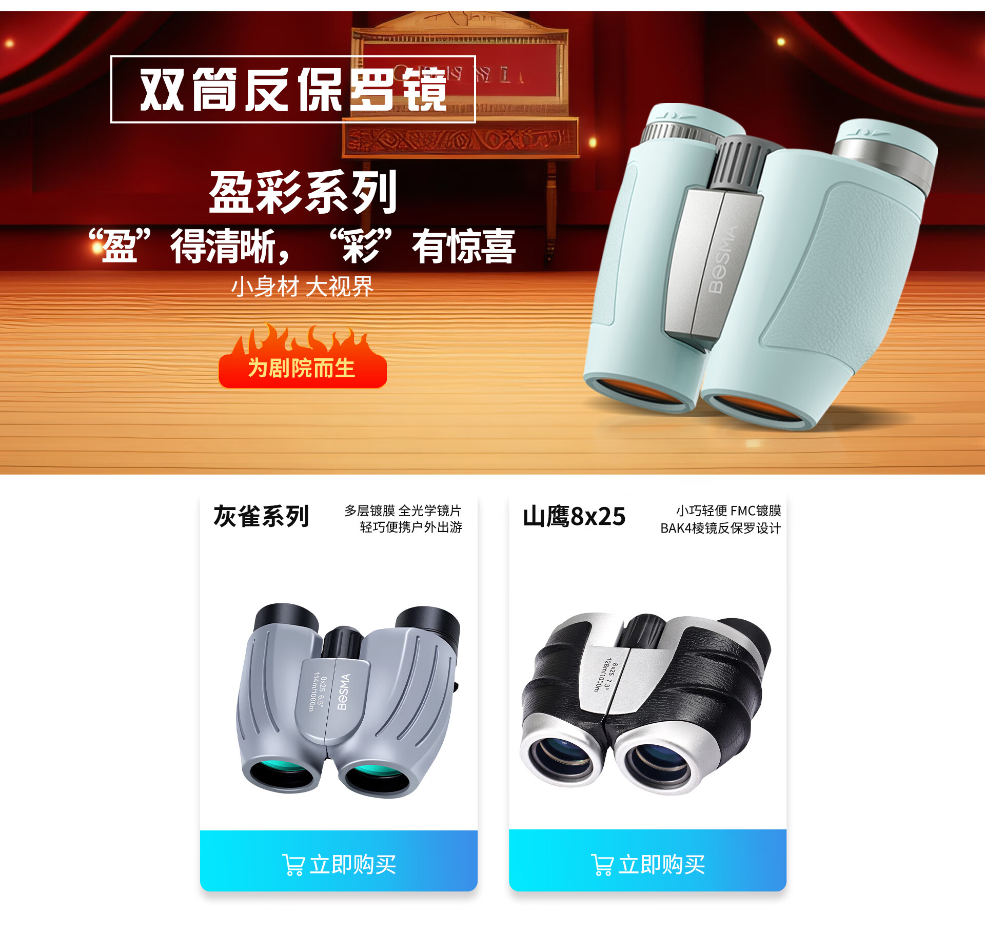博冠双筒望远镜高清成人儿童男女生旅行观鸟演唱会礼物 山鹰8x25 便携 8x25