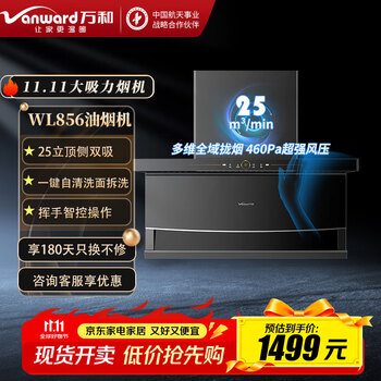万和(Vanward)吸油烟机燃气灶家用厨房三件套25立方大吸力WL856顶侧双吸7字型大风量烟机灶具热水器套餐 【主推单烟机】25立方吸力热清洗WL856