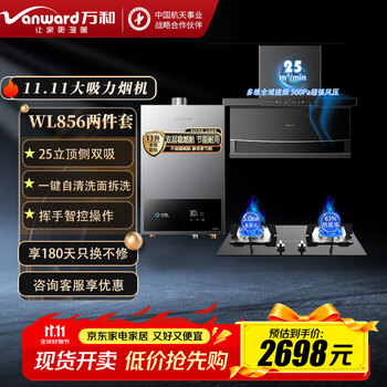 万和(Vanward)【厨卫家用烟灶热】WL856系列抽油烟机灶具套装顶侧双吸油烟机7字型升级静音25立方大吸力以旧换新 【烟灶热三件套】烟灶套装+17升零冷水燃气