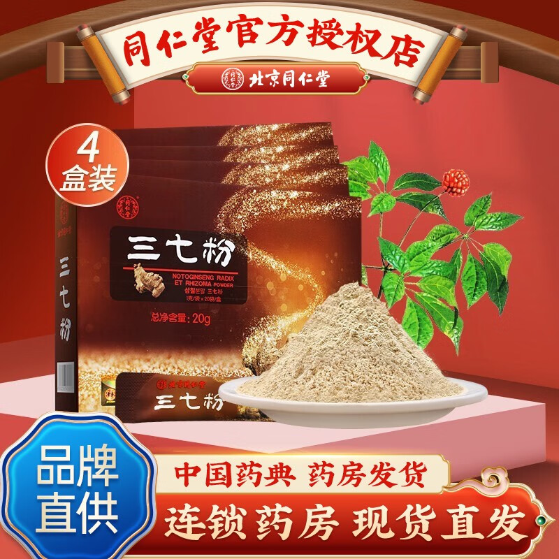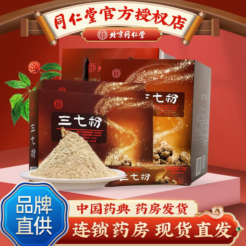顺丰】北京同仁堂三七粉云南文山20g*12盒礼盒装送礼品袋云南三七粉田七粉可搭配胶囊空囊自制面膜