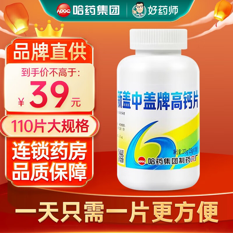 新盖中盖碳酸钙片维生素D3咀嚼片 110片成人补钙保健品送父母老人礼品 1盒装【大规格】