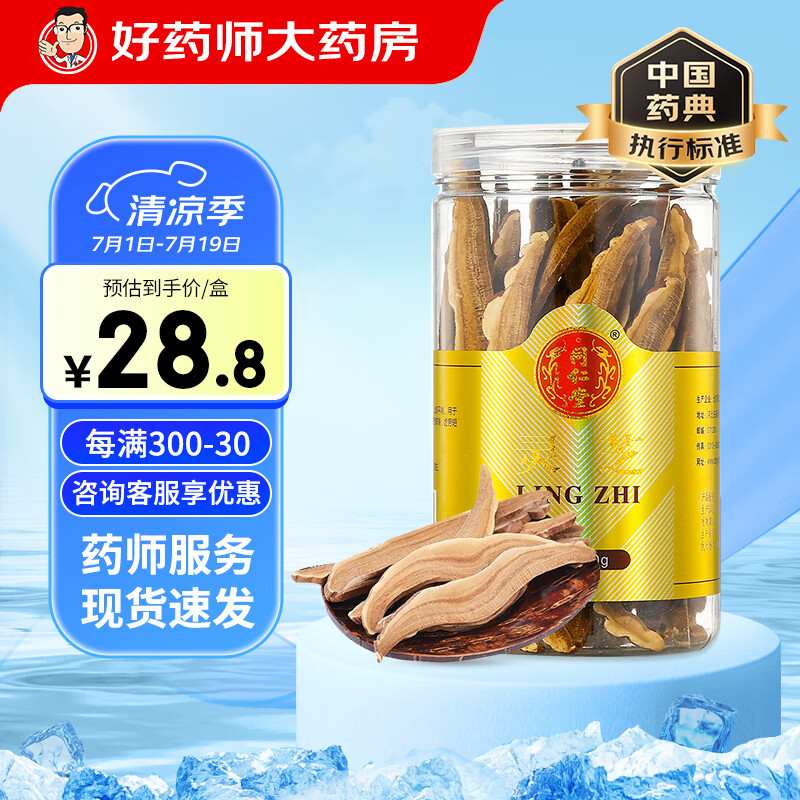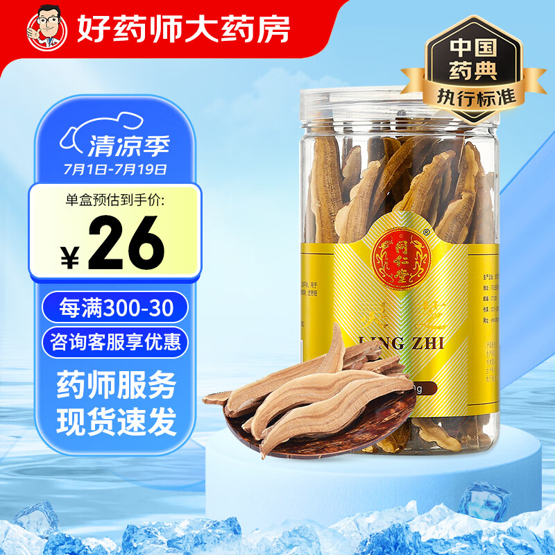 北京同仁堂灵芝片60g/瓶泡灵芝茶精选安徽灵芝可自制灵芝茶滋补泡酒料泡水煲汤送礼