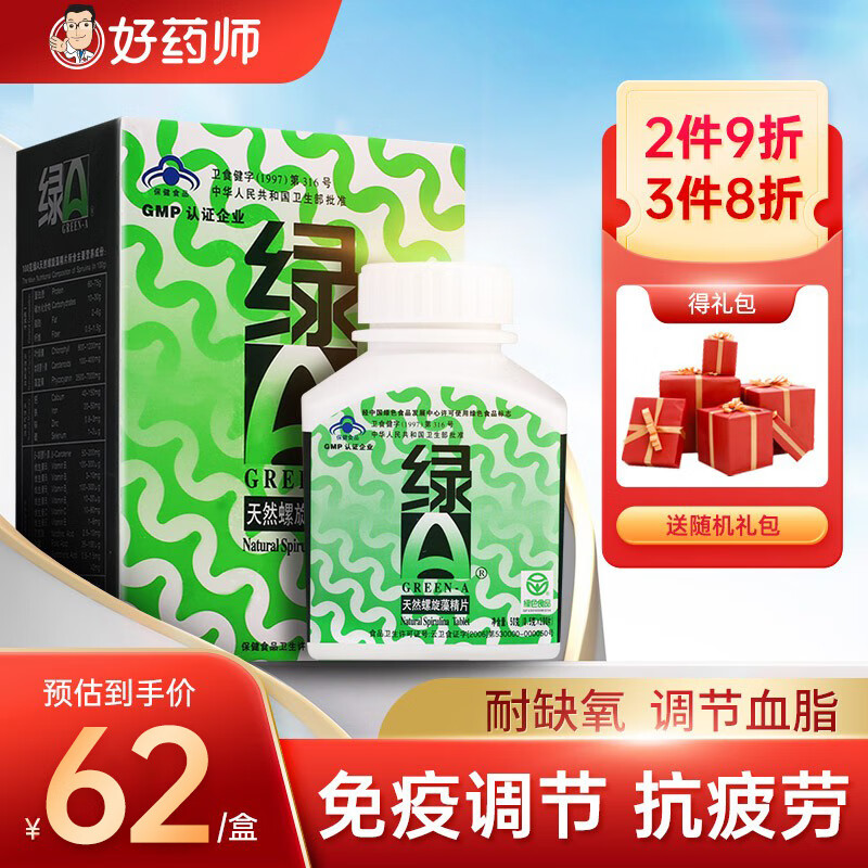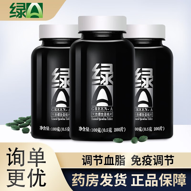 绿A天然螺旋藻精片0.5g*200片 绿a螺旋藻片 增强免疫力 耐缺氧抗疲劳 螺旋藻保健品200粒 200粒*3桶(共600粒)约45天量