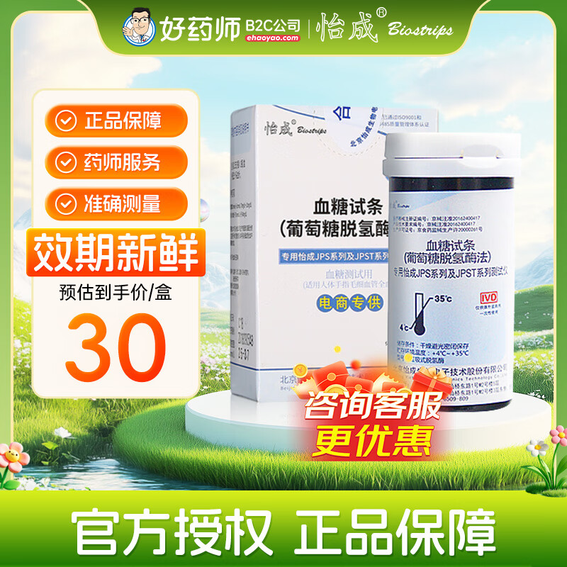 怡成JPS-7血糖仪家用医用型智能语音血糖试纸JPS-6 JPS-7 糖尿病试纸 50片试纸+50支针头