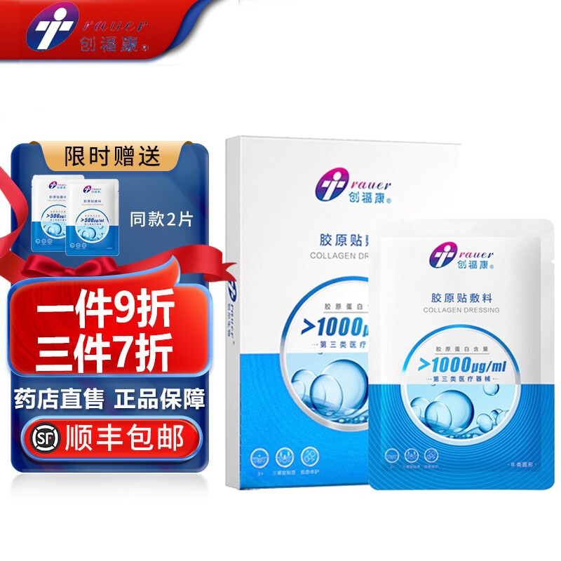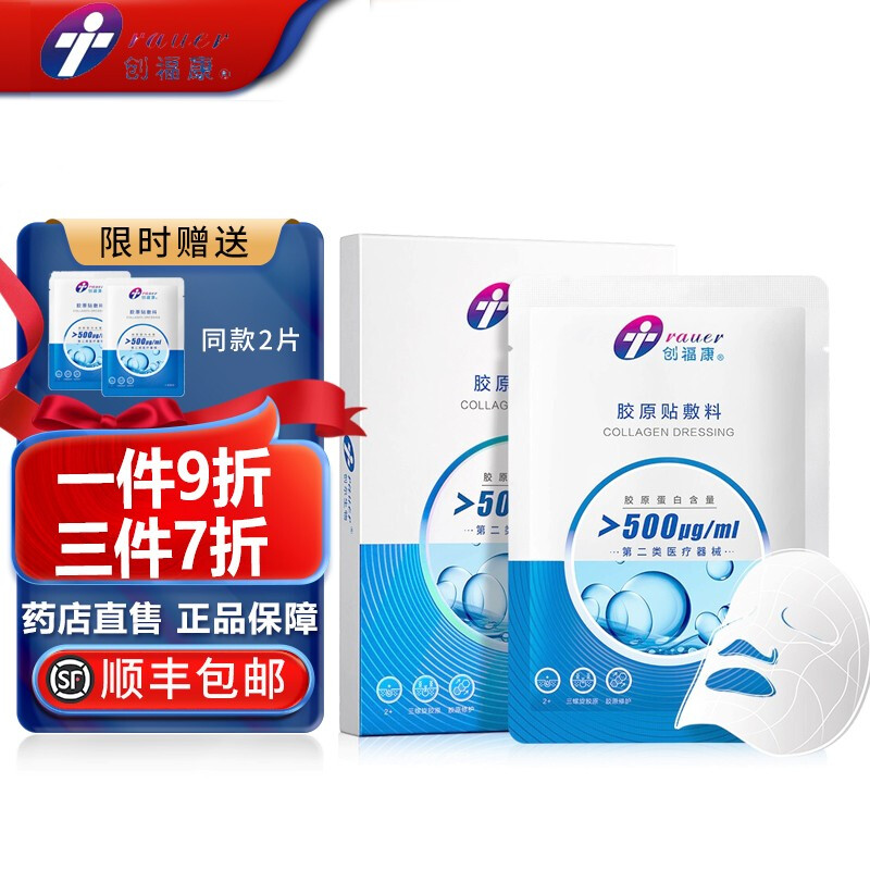 【顺丰】创福康胶原蛋白医美术后医用面部胶原贴敷料500 II类III类过敏修复敷料院线版 III类1000浓度蓝创1盒【送体验装2片】
