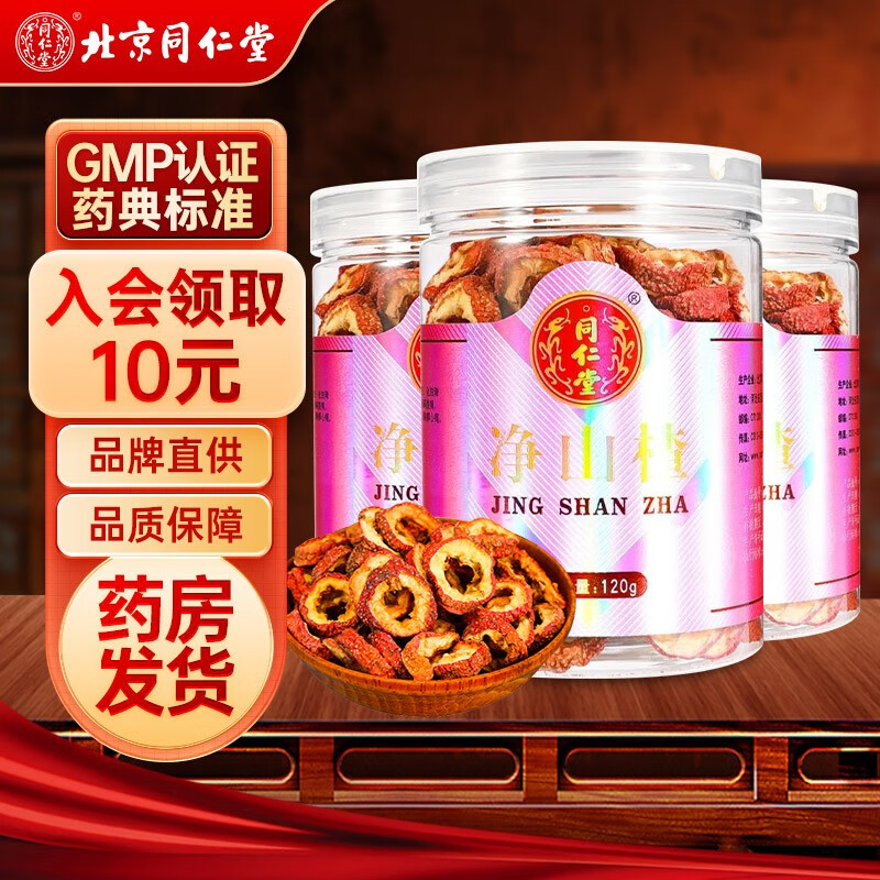 北京同仁堂山楂干无核可泡水泡茶120g*3罐装 山楂茶空心无核山楂片山楂干泡茶