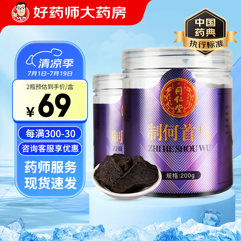 【两瓶装400g】北京同仁堂制何首乌片中药泡茶泡水自制何首乌粉何首乌茶