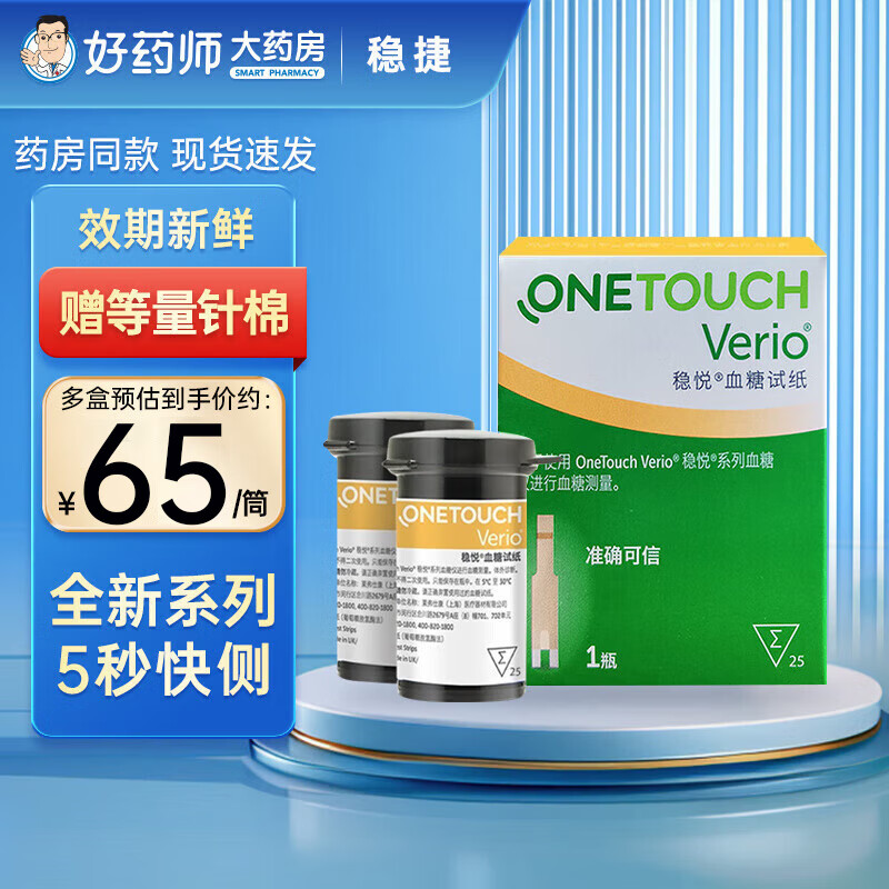 强生(Johnson)血糖试纸稳捷稳悦型适用于智优检测仪智佳血糖仪100片试纸带针