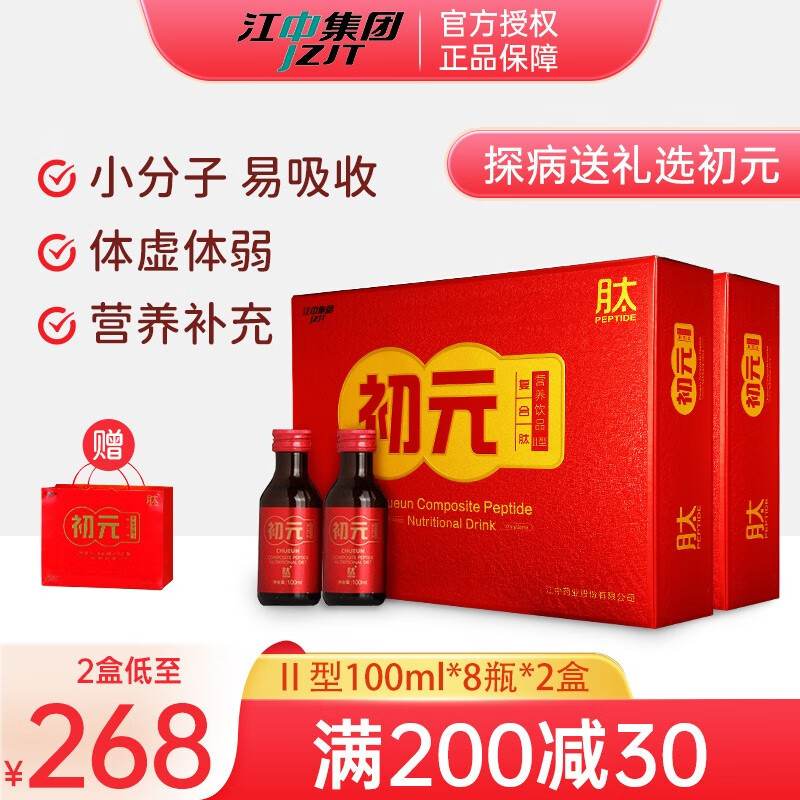 初元【2盒装】江中初元复合肽营养饮品Ⅱ型8瓶*2盒营养补品Ⅱ型礼盒装