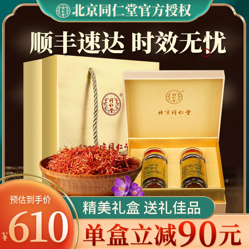 同仁堂「顺丰」北京同仁堂藏红花西红花礼盒装5g*2瓶西藏藏红花茶中药材