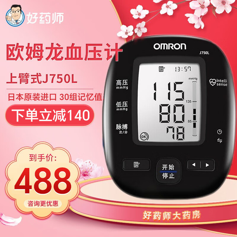 欧姆龙(OMRON)电子血压计血压仪上臂式家用全自动智能加压电子血压计 J750L