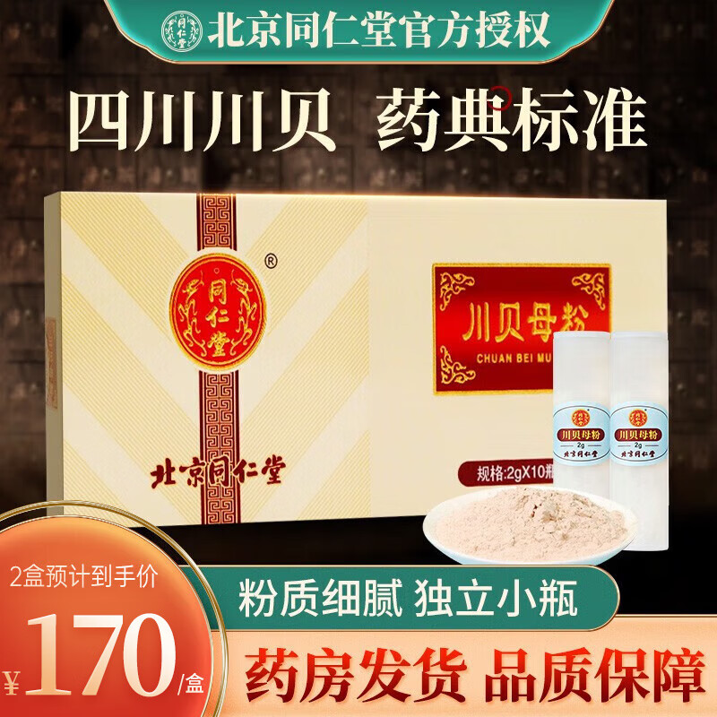 北京同仁堂川贝粉川贝母粉中药2g*10瓶独立小瓶装四川川贝打粉适合老人儿童成人