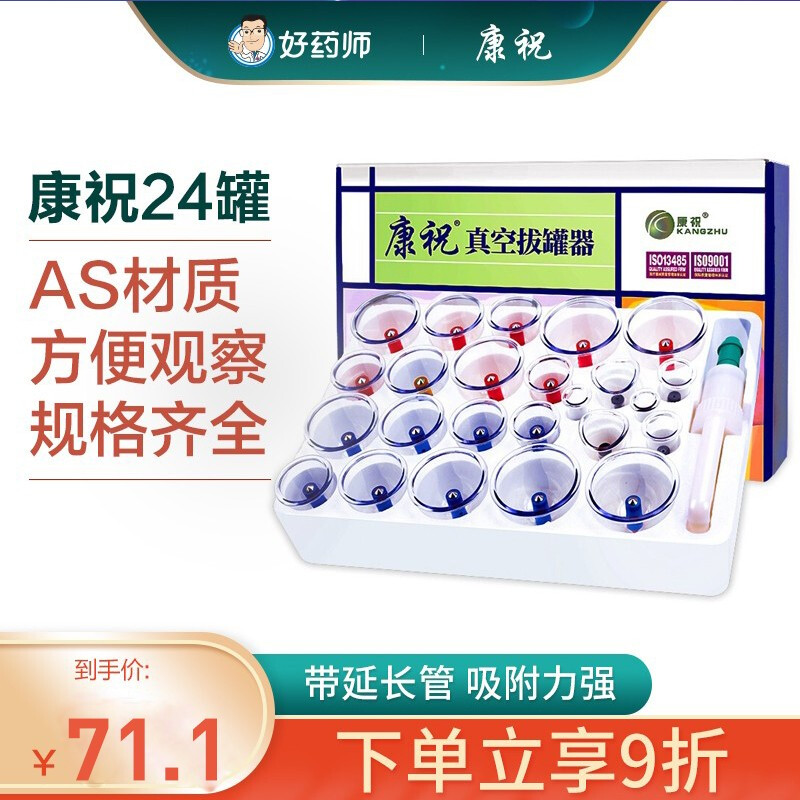 康祝拔罐器家用真空抽气式中医拔罐器化瘀拨火罐非玻璃AS材质全套家用医用吸湿气罐B24