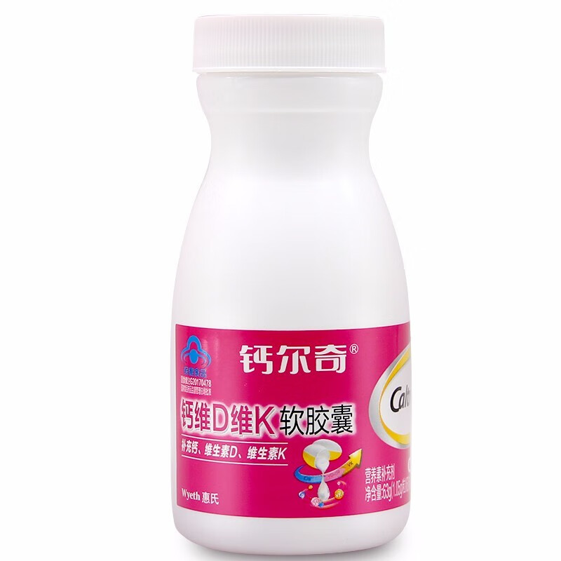 钙尔奇钙维d维k软胶囊瓶装成人老年人补充钙维生素D维生素K60片 60粒/瓶