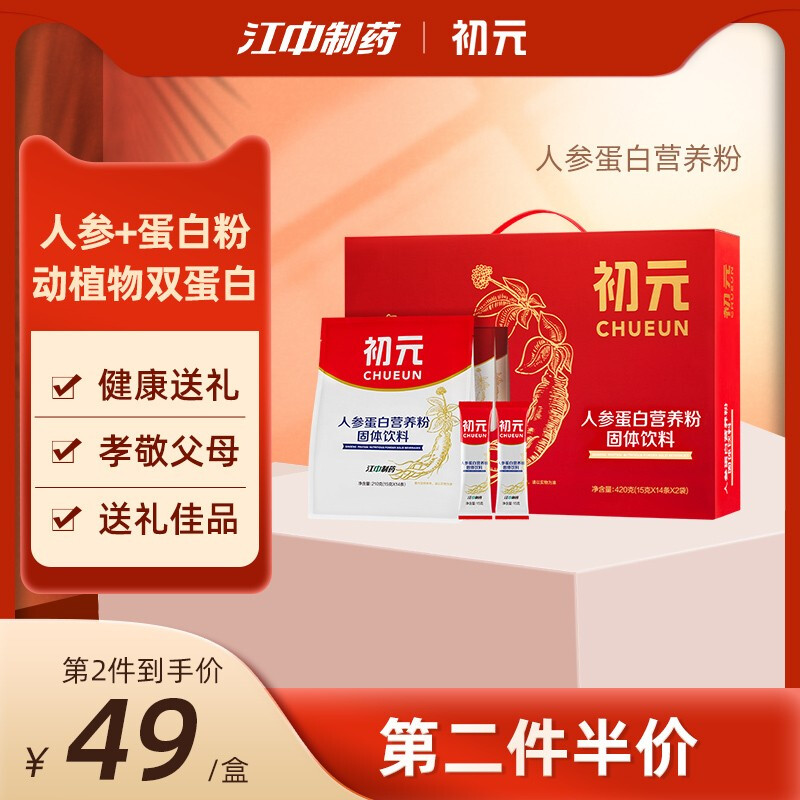 初元人参江中蛋白营养粉420克(28条)送礼礼盒装蛋白粉 420g 礼盒装【到手价低至66元/盒】